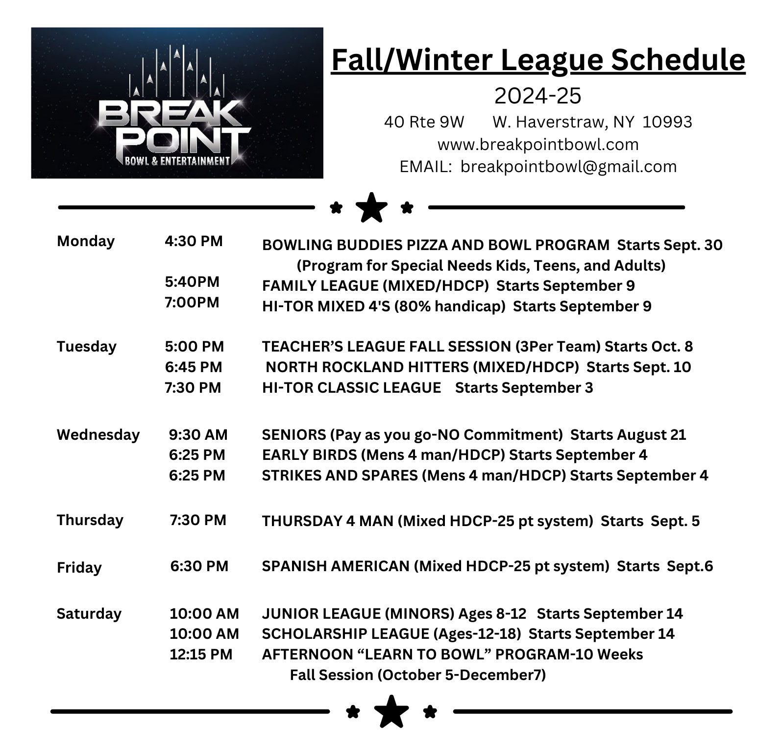 Please put it on the website – lane availability times may vary due to league schedules and parties. Please call ahead to verify.