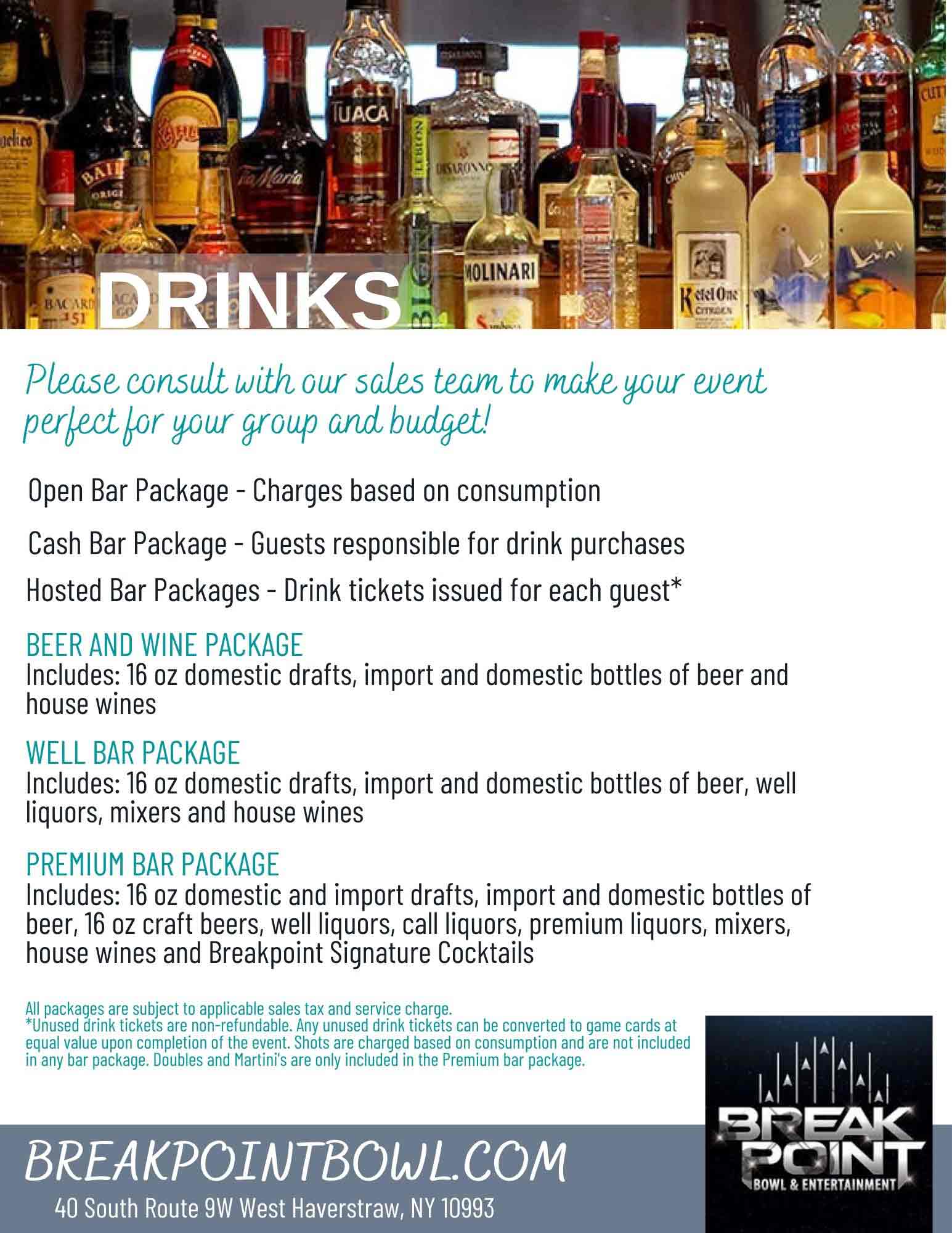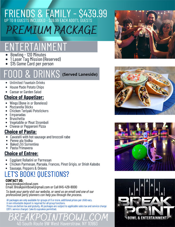 point 50% of the deposit will be returned in form of a Break Point Bowl &